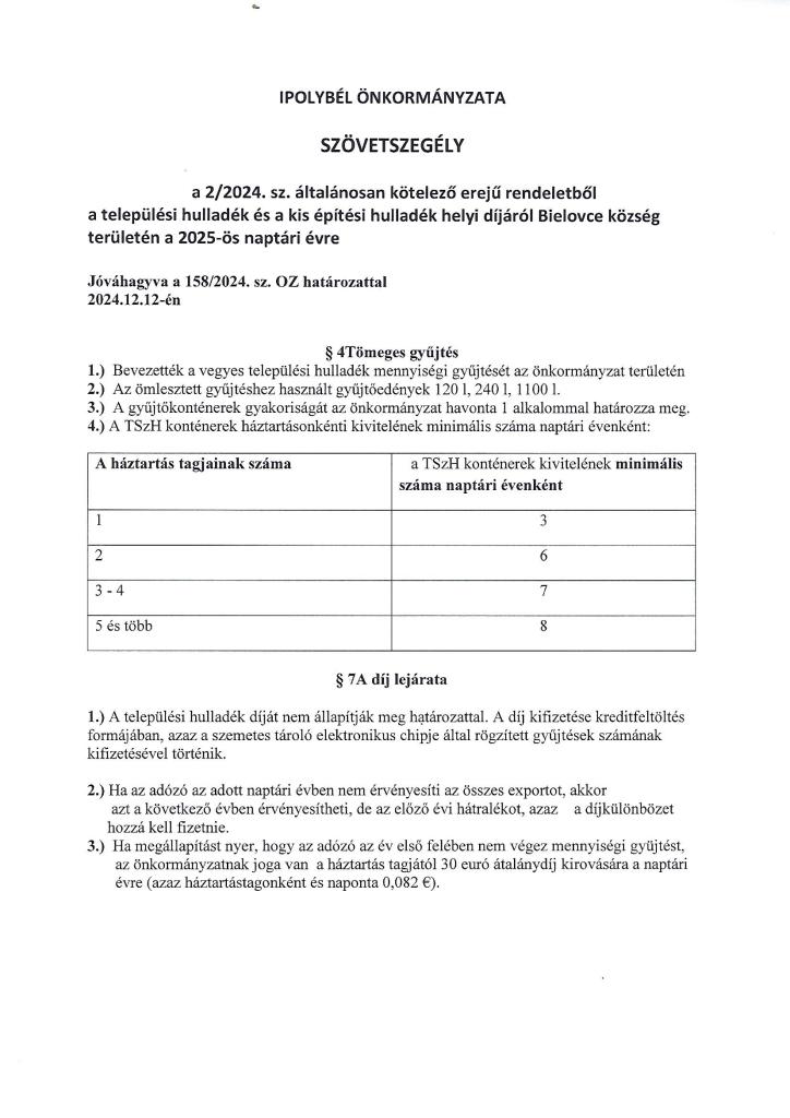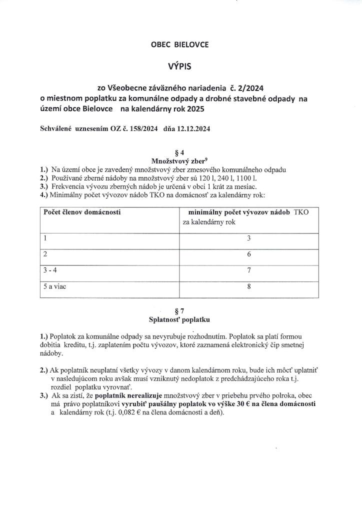 výpis z VZN obce Bielovce 2/2024